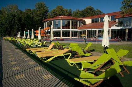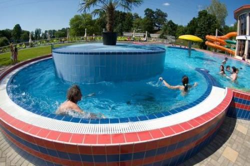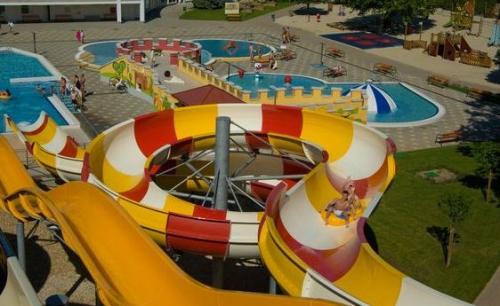 Megtalálható itt minden, ami a felüdülést szolgálja: fekvőmasszázs, jacuzzi, nyakzuhany, masszírozó fúvókák, vízesés és sodrófolyosó, valamint két teljesen zárt beltéri csőcsúszda.